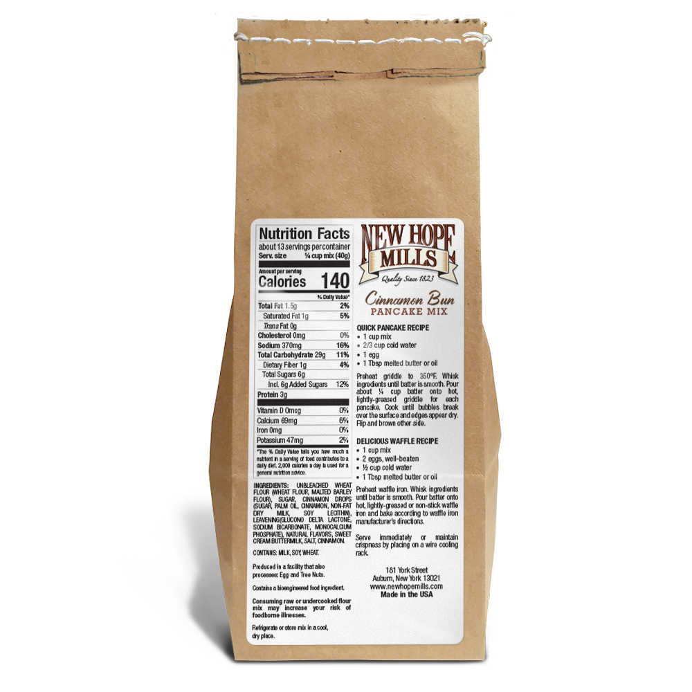 Indulge in the comforting flavors of homemade cinnamon buns with New Hope Mills Cinnamon Bun Pancake Mix.